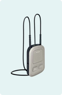 Adjust your hearing aids’ volume and settings with a handheld remote — no tiny buttons to fumble with. Ideal for those who prefer easy, straightforward control.