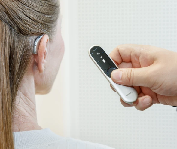 Adjust your hearing aids’ volume and settings with a handheld remote — no tiny buttons to fumble with. Ideal for those who prefer easy, straightforward control.